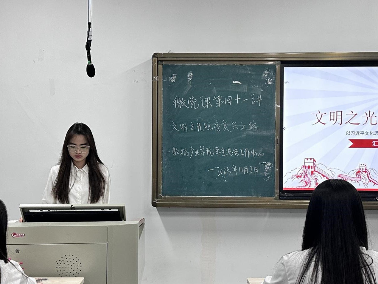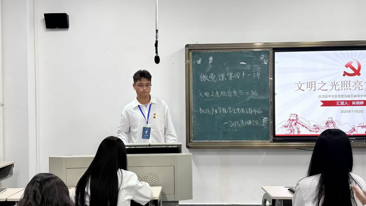 为扬帆复兴续写新篇,以文化凝心聚力、用文明培根铸魂,让精神之光照亮中国式现代化的壮阔征程,共同谱写民族复兴的璀璨华章。2025年11月2日,bevictor伟德员工党务工作中心组织开展《文明之光照亮复兴之路》主题微党课。本次微党课由林伟清同学主持,林燕婷同学主讲,公司全体入党积极分子参加。