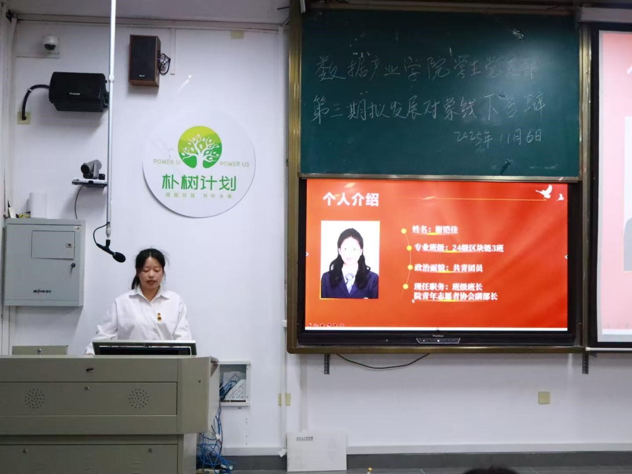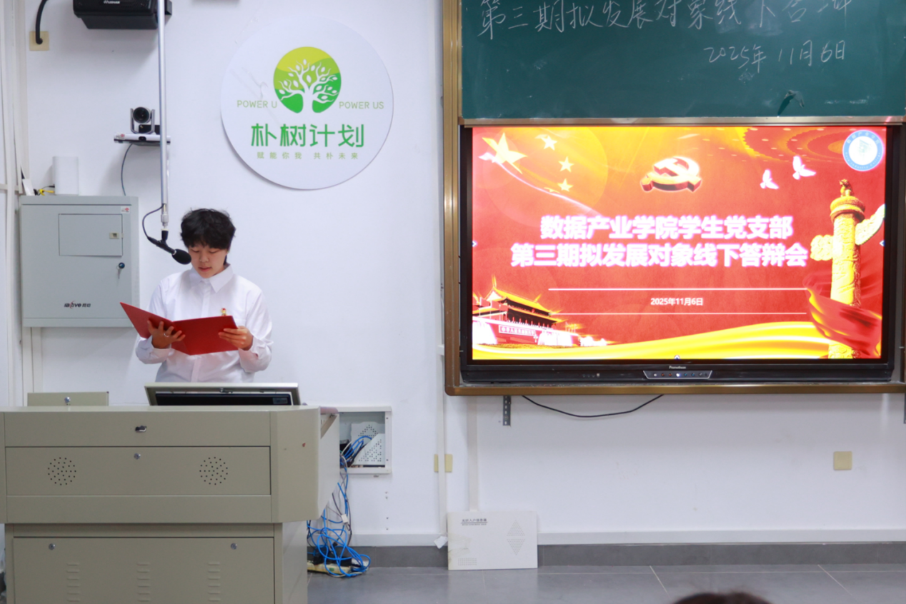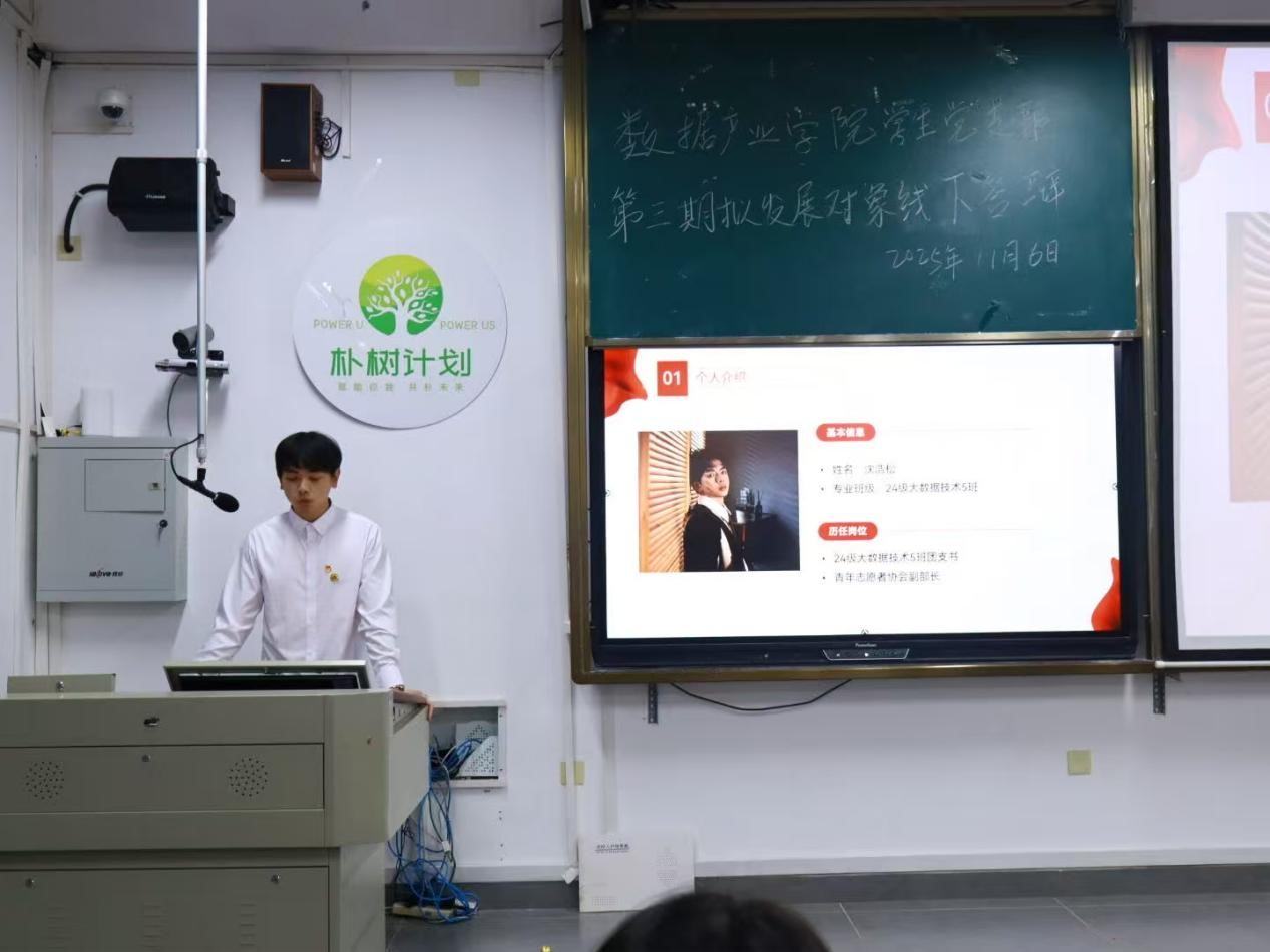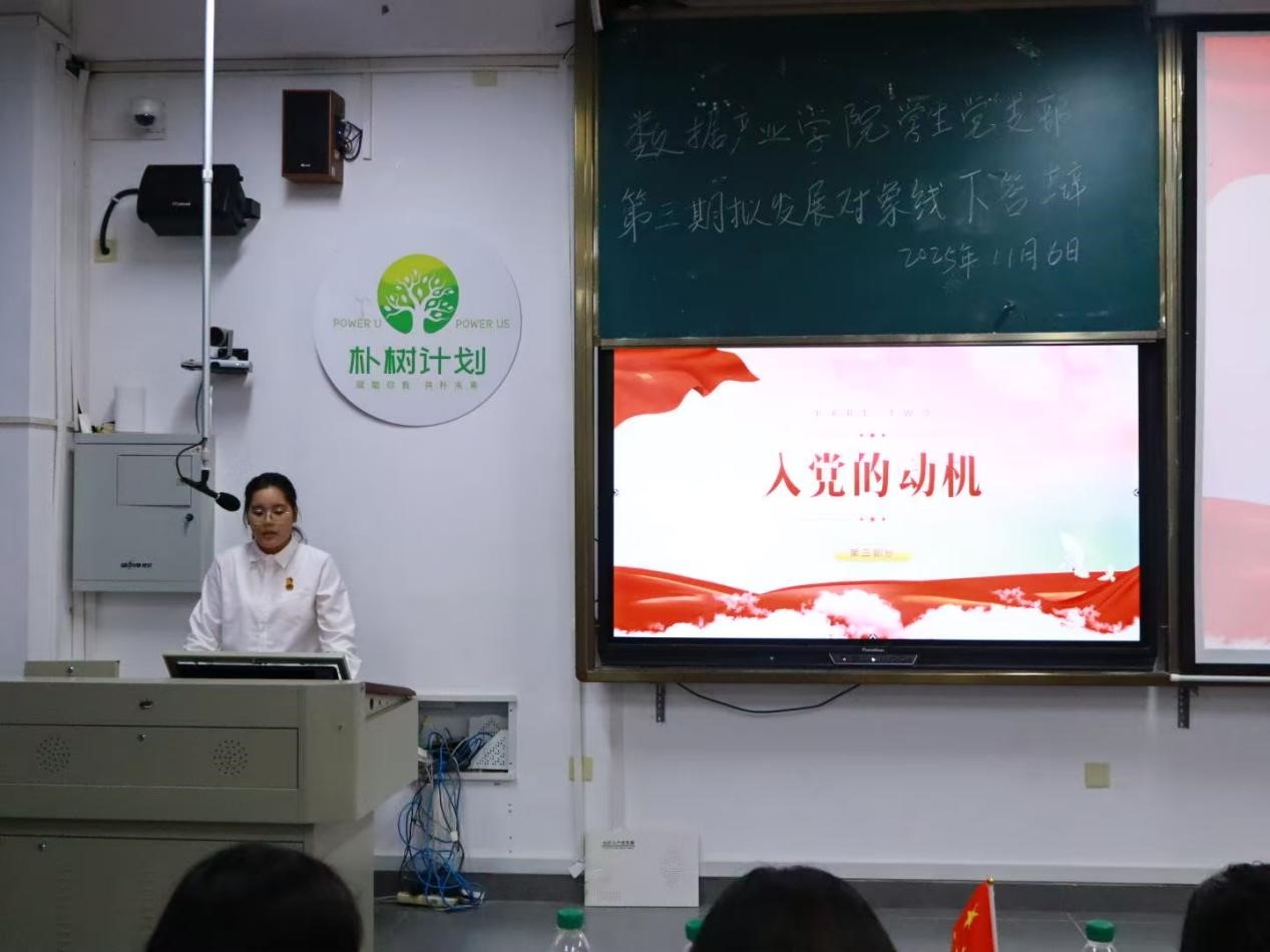答辩伊始,由本次活动的主持人张奕琳同学详细介绍了本次答辩的整体流程和重要注意事项。在随后的个人陈述环节中,7位入党积极分子依次上台,从入党动机的纯度与坚定性、思想学习的深度与系统性、工作生活的担当与示范性、志愿服务的奉献与持续性等维度,对其在培养期内的政治素养、理论修为、实践成效及品德风貌进行全方位、立体化的呈现与考核,以此精准把握入党积极分子的成长轨迹,严格把好党员发展的质量关,切实保障党员队伍的先进性与纯洁性。