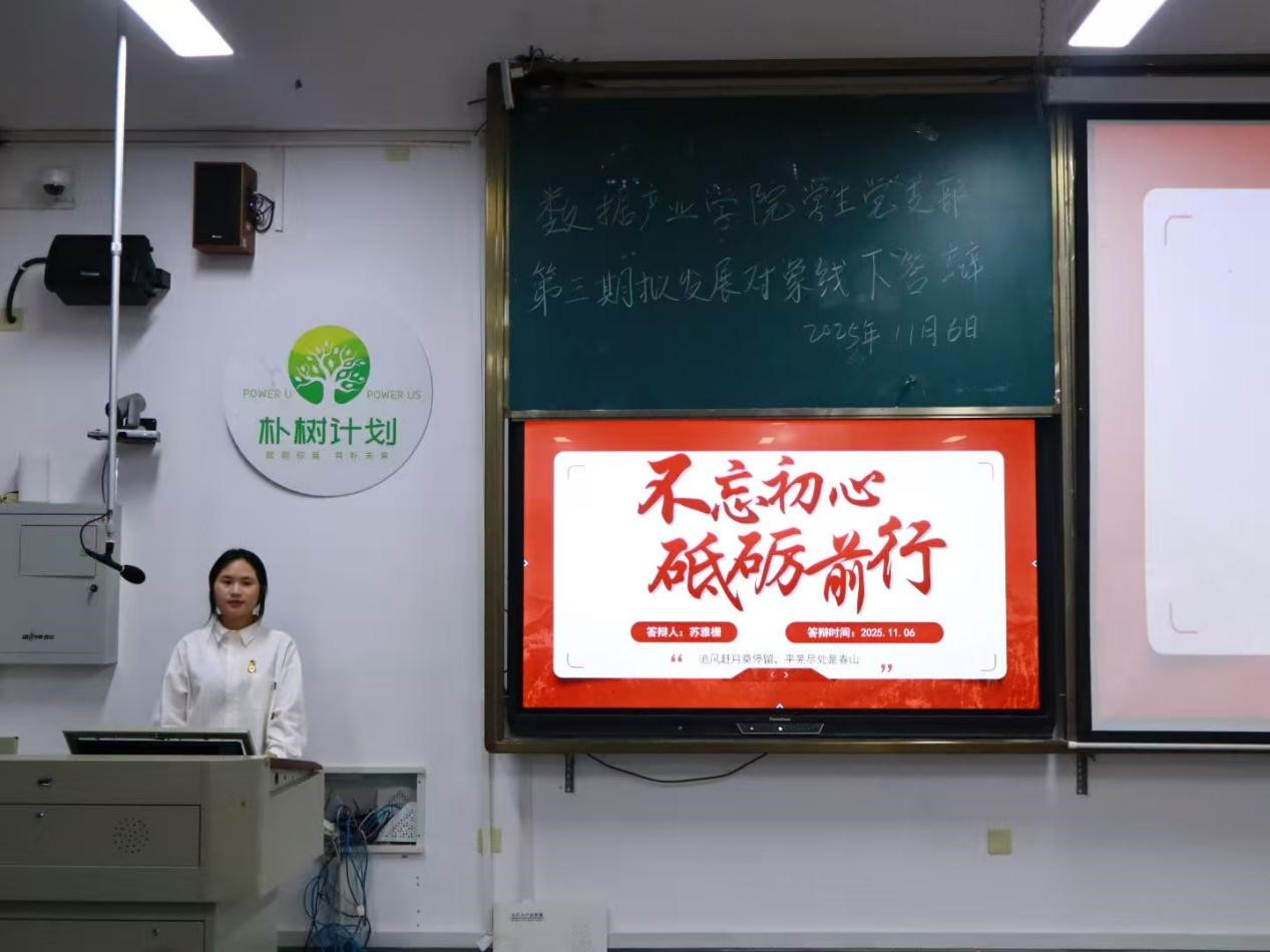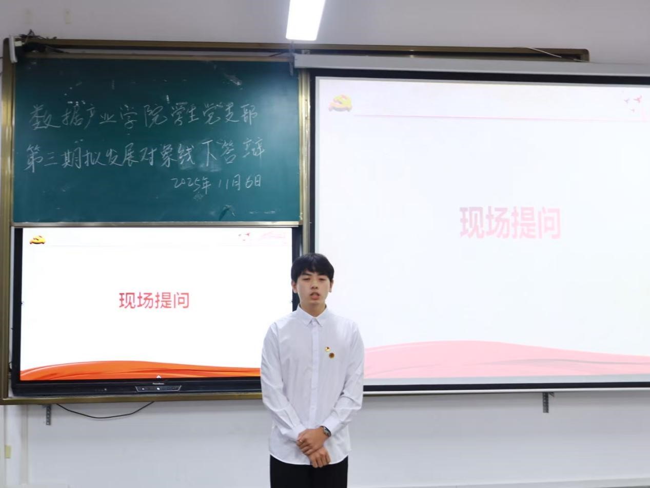 与会老师结合入党积极分子的PPT汇报内容,聚焦其入党动机的初心溯源、思想学习的进阶轨迹、工作生活的责任担当及志愿服务的实践实效,通过针对性、深层次的现场互动提问,细致探究其政治觉悟的成熟度、理想信念的坚定性及面对实际问题的应对能力。该环节旨在通过与会老师的精准追问与深度交流,全面检验入党积极分子言行一致的作风、求真务实的态度及担当作为的潜力,确保将政治素质硬、思想觉悟高、实践表现优的积极分子吸纳到党组织中来,持续巩固党员队伍建设的质量根基。