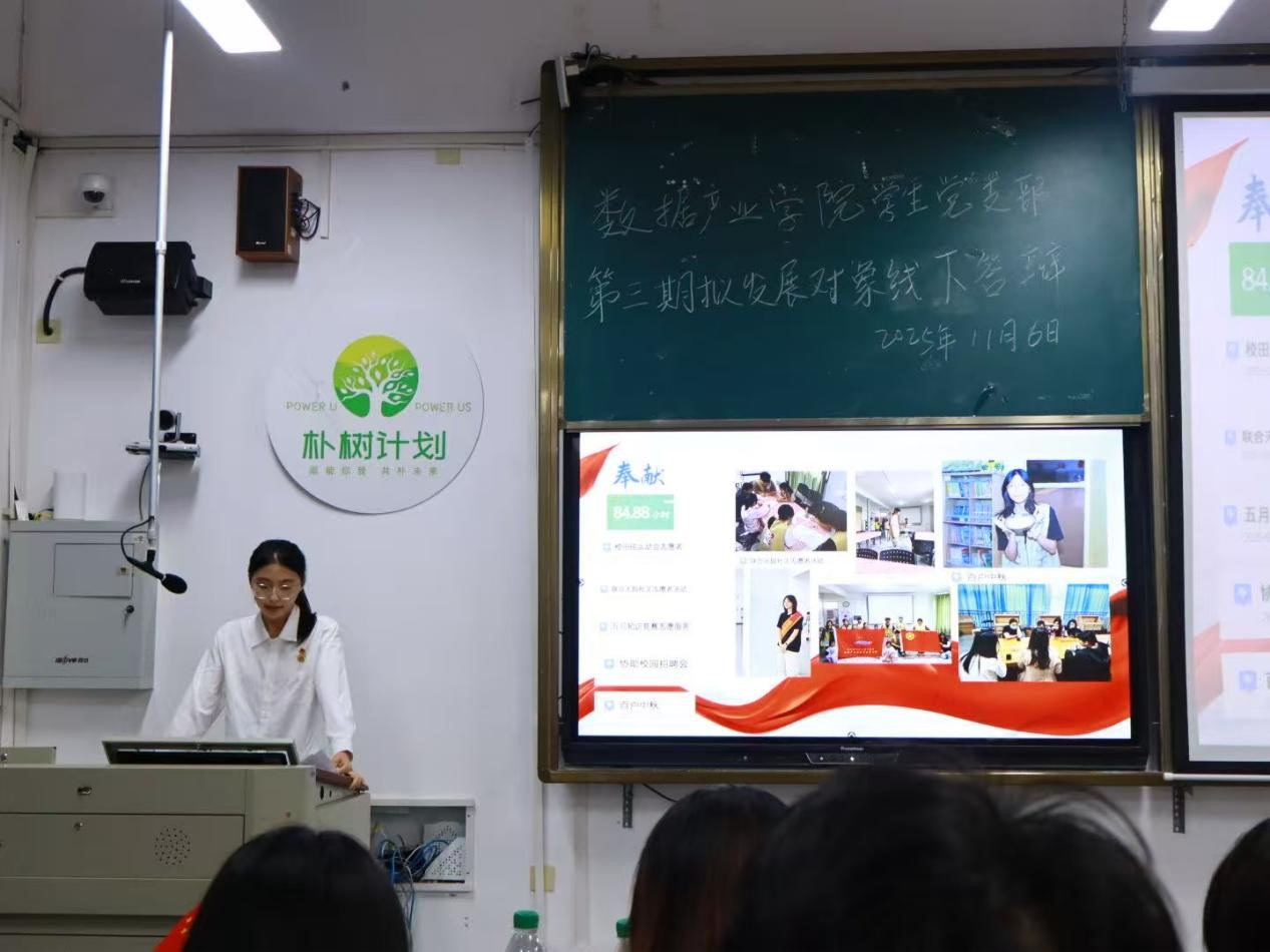 在线上答辩中,6位入党积极分子依次在线上展示,从入党动机的纯度与坚定性、思想学习的深度与系统性、工作生活的担当与示范性、志愿服务的奉献与持续性等维度,对其培养期内的政治素养、理论修为、实践成效及品德风貌进行全方位呈现与考核——依托线上文档、视频素材等形式,立体展现成长轨迹,以此精准把控入党积极分子的培养质量,严格把好党员发展的“入门关”,切实保障党员队伍的先进性与纯洁性。