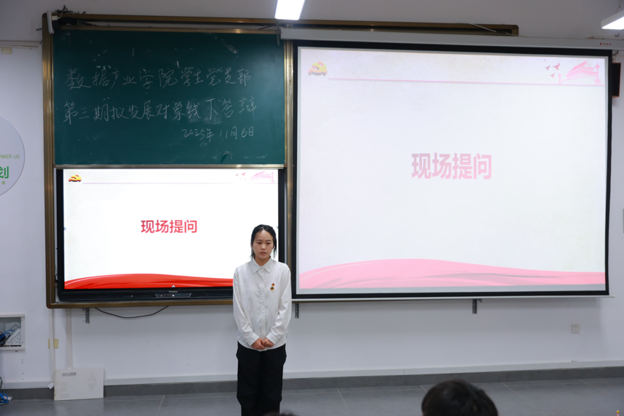 现场提问环节中,与会老师围绕党的创新理论体系,以党的二十大精神为统领,聚焦党章核心要义、党史发展脉络、党规党纪要求及新时代党的建设总要求等关键领域,通过多维度、深层次的问题设计,采用随机抽题与现场应答相结合的形式,全面考察入党积极分子对党的知识的理论认知精度、政策把握准度及实践运用效度。此举旨在通过评委老师的专业提问与精准考察,推动入党积极分子在理论学习中筑牢信仰之基,在知识问答中补足精神之钙,确保其在政治立场、政治方向、政治原则、政治道路上与党中央保持高度一致,为成为一名合格的共产党员夯实思想理论根基。